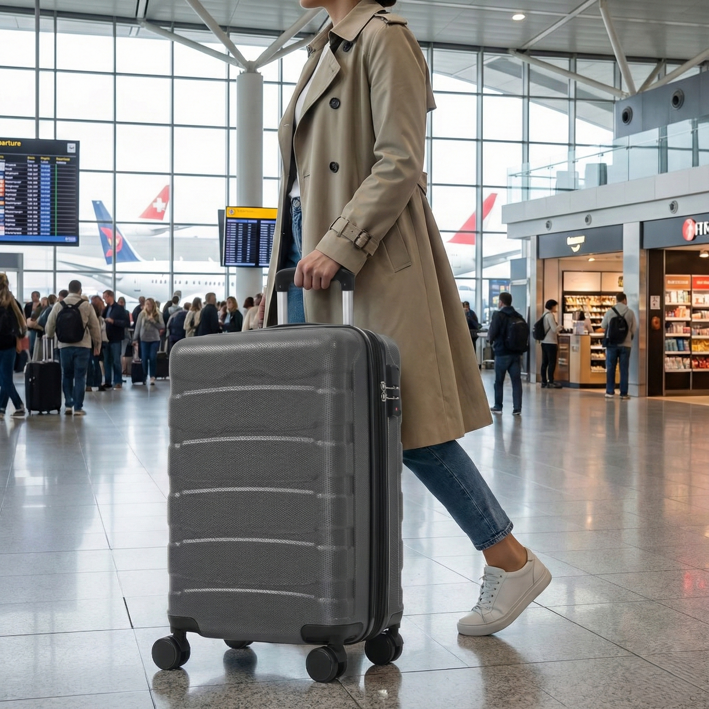 24 Inch Hardshell ABS Checked Luggage, Durable Expandable Travel Suitcase with Spinner Wheels, TSA Lock